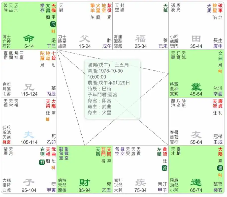 所謂的敗局可以在出生命宮三方四正,也可在大限流年之中,敗局如果三方主星少且弱又不化吉或不與六吉星同度;則在羊陀能量的肆虐之下自然會很難成功立業。如果吉化或遇吉多主星強旺,敗局則不一定為敗局,反而能成就富貴。